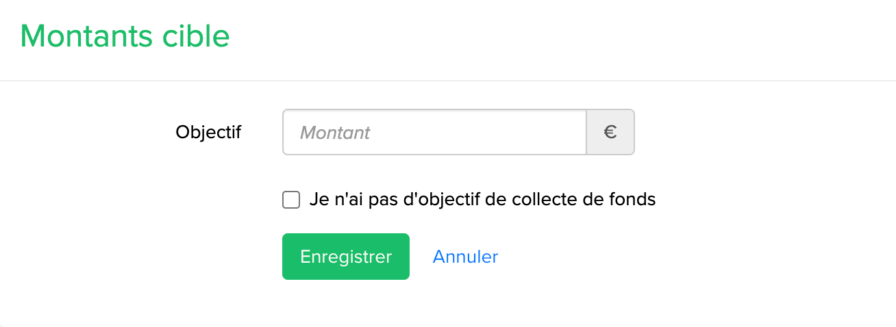 - Le montant cible sera donné à titre indicatif. Cela signifie que vous pourrez continuer à recevoir des dons même s'il est atteint.