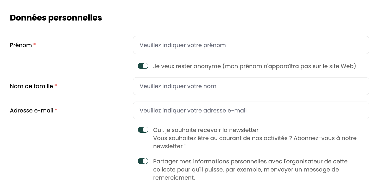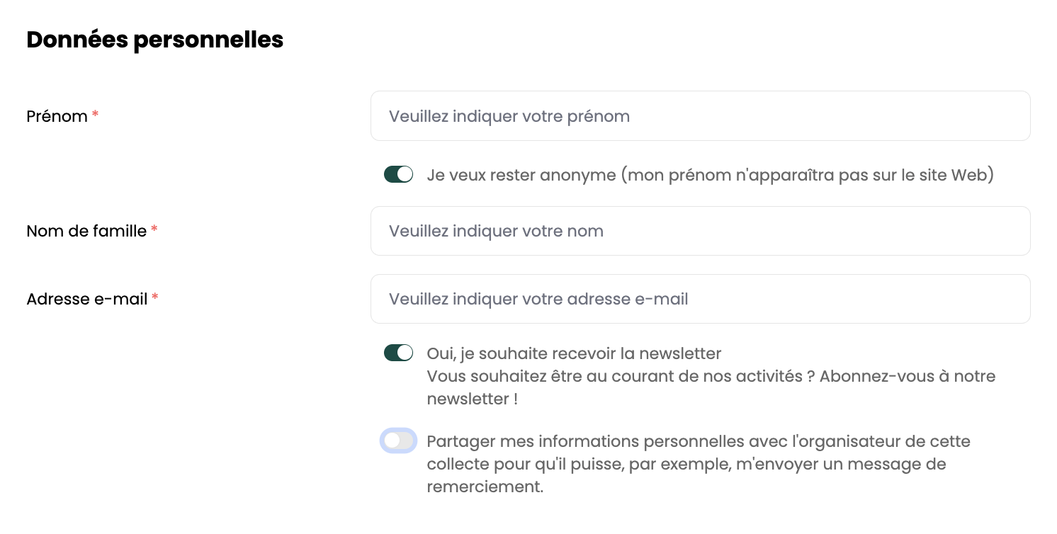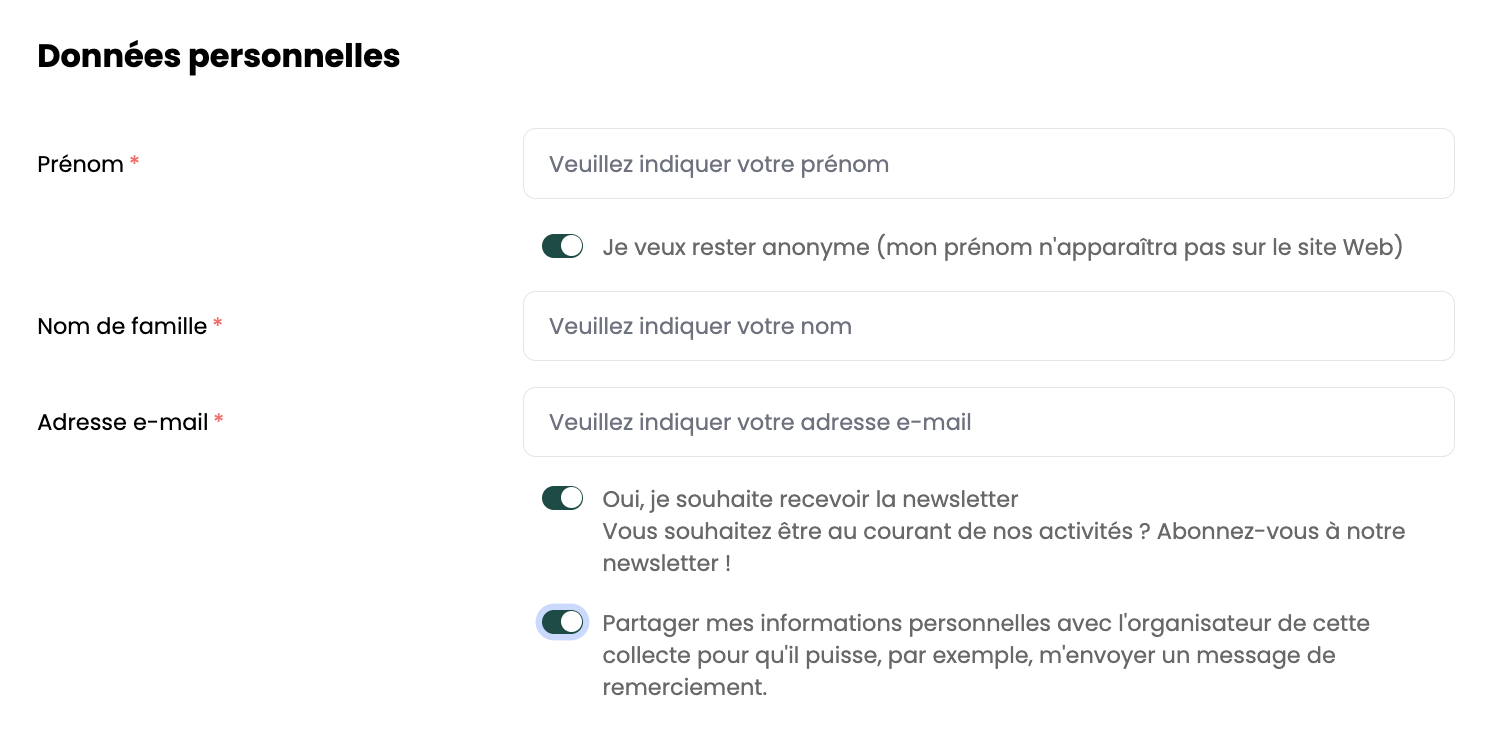 👉🏼 Si vous souhaitez rester anonyme vis-à-vis de l'organisateur de la collecte, décochez la case Partager mes informations personnelles avec l'organisateur de cette collecte (...)